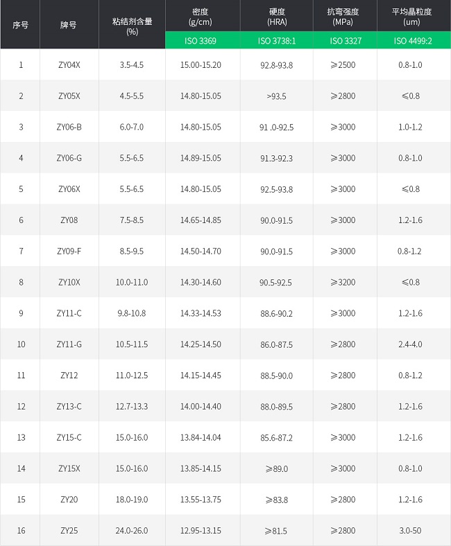 鎢鈷硬質(zhì)合金品種繁多,按用途可分為鎢切削工具、礦山工具和耐磨工具三大類。我們選擇硬質(zhì)合金制品時,可根據(jù)這三種情況選擇。具體性能可參照上表,選擇合適的牌號適應相關工況的應用。